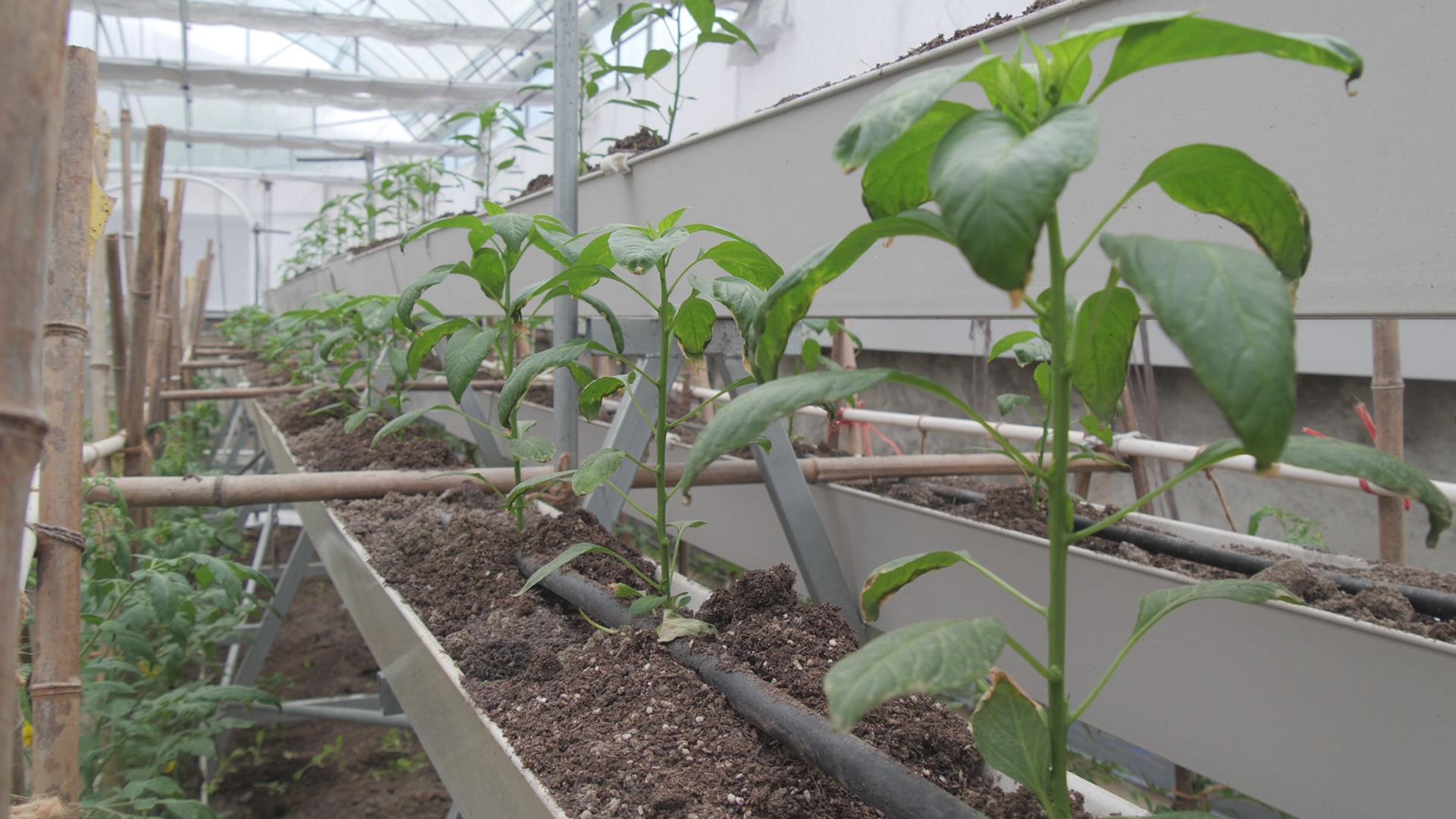 园区负责人胡传平说:“大棚的主要技术特点有两层遮阳网,具有内外保温功能,通过控制棚内温度、湿度,确保蔬菜的正常生长。同时,棚内建有补光灯、智能滴灌系统,为蔬菜提供人造阳光,节约水资源”。