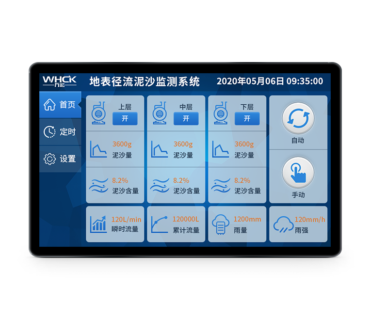 为了满足教育研究机构和科学研究机构对实时降雨的需求,体育333测控自主研发了地表径流泥沙监测系统,该系统用于径流站,为各种实验提供监测条件。相应配套触摸屏软件可以实时显示当前瞬时流速和瞬时流量,并且通过触摸屏配套软件可以实时控制整个监测的过程,可以通过查询方式查询历史数据,并能导出数据到Excel格式文件等功能。