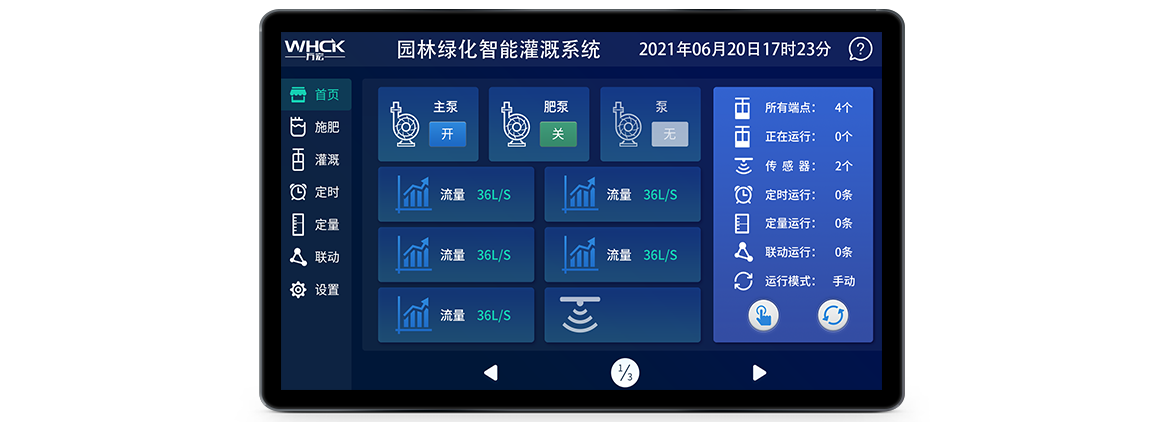 该系统扩容性,灵活性强,可进行分区域、多路的集中或分散智能控制。适合各种灌溉方式(滴灌、喷灌、微灌等)系统具有数据分析、决策等功能,利用传感器或设置内容作为灌溉运行的控制条件,实现智能化灌溉。