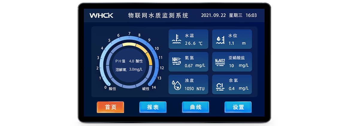 2.1.无线联网,24小时不间断实时监测水质五大参数:溶氧、氨氮、亚硝酸盐、水温、PH值,选配:浊度、余氯、ORP、水位